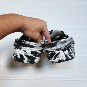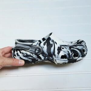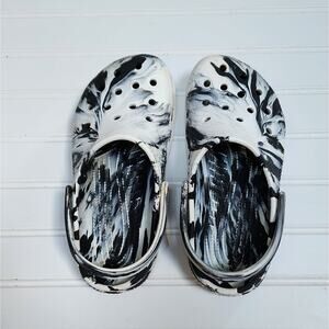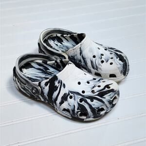 Crocs Classic Marbled Kids Clogs/Sandals, size 3 Big Kids, white and black, have some light normal wear, good condition.