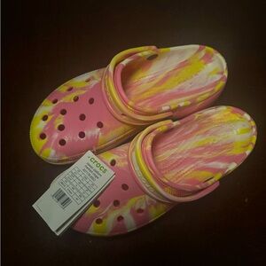 Crocs Classic Platforms Clogs pink/yellow Marbles Women’s 11