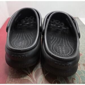 The Crocs Classic Size C13 Black Clog Shoes are unisex slip-on shoes designed for kids. With a low top shaft style and a solid black color, these shoes feature a rubber outsole, cushioned comfort, and are breathable. Perfect for activewear or casual occasions, these Crocs are ideal for school and everyday wear. The iconic Crocs logo accents add a touch of style to this classic clog design, making them a versatile and comfortable choice for children in size 13. Made in Brazil with Croslite upper material, these shoes are a must-have for any young boy or girl.