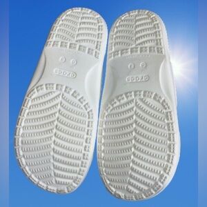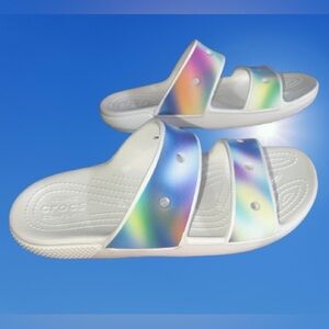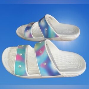 This is a pair of very gently loved (only worn inside), Crocs Classic Solarized Sandals.