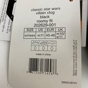 Crocs Classic Star Wars Villain Clogs Black RARE Kylo Ren Star Wars The Force Awakens. Roomy fit. Model number 202629-001. Rare limited edition collaboration. Men’s Size 11. New NWT.