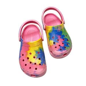 Crocs Classic Tie Dye Graphic Clog Electric Pink Multicolor Shoes Size 6
