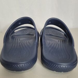 The look and feel of the iconic Classic Clog and Crocs Slide, in sandal form. Lightweight and flexible with 360-degree comfort Size 8 (Unisex) Features: - Roomy fit - Two-strap upper inspired by the classic clog - Incredibly light and fun to wear - Easy to clean and quick to dry - Foam footbed for lasting comfort - Holes for Jibbitz charms - put your personality on full display - Color is navy blue Excellent pre-owned condition - no flaws evident. Shoes look next to new ** I always consider reasonable offers. Same or next day shipping. Thank you for stopping by my closet. Deb h-1559 vh