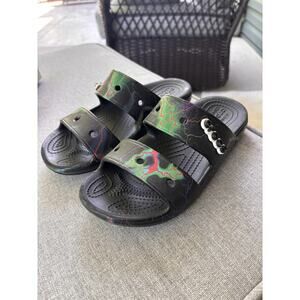 Crocs Classic Two-Strap Slide Sandals Black/Green US Men's 4 Women's 6