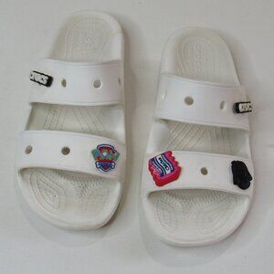 Crocs Classic White Sandals Slides w/Jibbitz Charms Unisex Size Womens 8 Mens 6