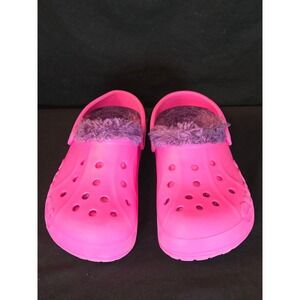 Crocs Classics Kids Pink Fuzz-Lined Clogs Shoes Size J4