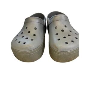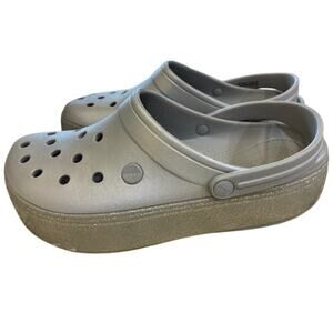 Crocs Classis Platform Comfort Clog Glitter Platform Silver Women's 11, Men's 9