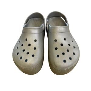 Crocs Classis Platform Comfort Clog Glitter Platform Silver Womens 11 Mens 9