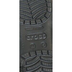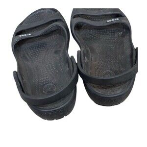 These are preowned Crocs Cleo II Double Strap Slingback Sandals. They feature the brand's signature Croslite material for lightweight comfort and a pivoting ankle strap for a secure fit. They show some dirt in the footbeds but are in otherwise great condition.