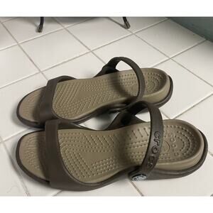 Excellent condition, like new size 5 brown and mushroom Crocs Cleo slip on comfort waterproof sandals