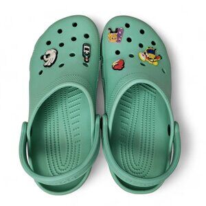 Crocs Clog Sandals Women's Mint Green Slip On with 5 Cartoon Jibbitz M6 W8