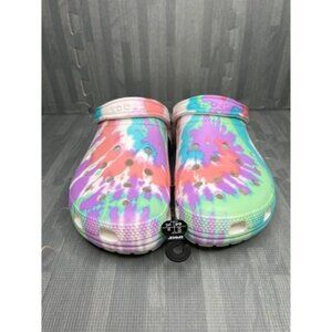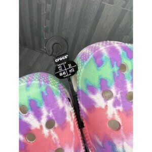 Experience comfort and style with the Crocs Tie Dye Graphic Clog. These brand new clogs, featuring a solarized design and style number 205453-6SN, combine a unique tie-dye pattern with the iconic Crocs comfort. Designed for men and sized at 13, these clogs are a perfect addition to your footwear collection.