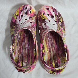 Crocs Clogs Unisex Size 9 Mens 11 Womens Pink Classic Marbled Tie Dye 206867 EUC