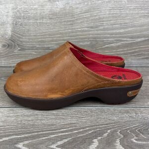 Crocs Cobbler 2.0 Women's Sz 8.5 Tan Leather Red Slip On Mules 16052 in very good condition. Stylish tan mules with a red interior. Easy slip-on design. Ideal for everyday comfort. Get these today ladies.