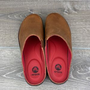 Crocs Cobbler 2.0 Women's Sz 8.5 Tan Leather Red Slip On Mules 16052