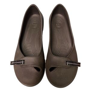 Crocs Crocband Ballet Flats Womens Size 6 Espresso Brown Pink Stripe Slip On