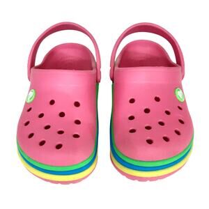 Crocs Crocband Clogs Rainbow Girls 11 Slip On Water Shoes Ciabatta Pink Paradise