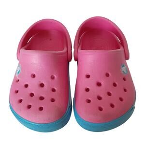 Crocs Crocband Clogs Toddler 4/5 Hot Pink Blue Stripe Retro Water Shoes Summer