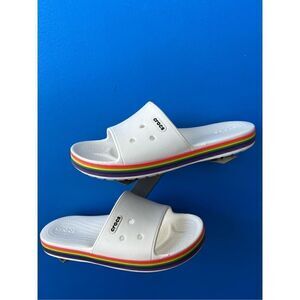 Crocs Crocband III white Rainbow Slide Sandal, 8 US Men and 10 women