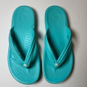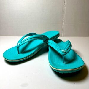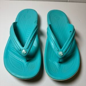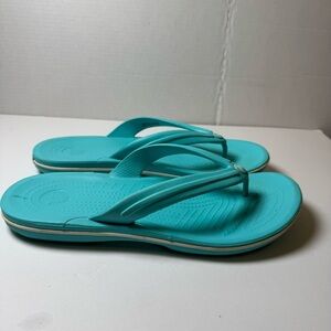 Crocs Crocband Teal Flip Flop Sandals Unisex Women 11 Men 9 Beach Pool in great condition.