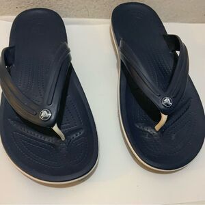 Crocs Crocband Thong Flip Flops Mens 12 Navy Blue Slip On Sandals