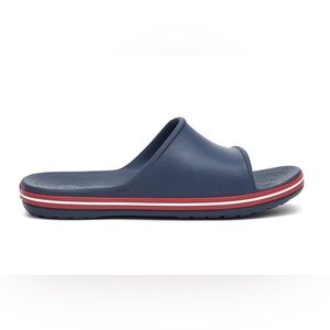 Step into all-day comfort with these Crocs Crocband Unisex Sandals in the striking Black with Dark Blue & Red colorway (Model 204108-4CC). Designed for both men and women, these versatile slides feature a lightweight EVA sole for cushioned comfort and a flat heel for easy wear.
