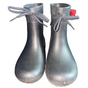 Crocs Crocs Dual Comfort Freesail Shorty Rain Boots Rubber Boots with Front Lace Tie Black W size 4 203851. Minor signs of wear on toe of shoes and other areas but these boots have plenty of life left.