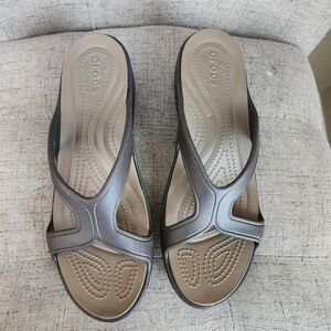 Crocs Dual Comfort Wedge Slides Sandals Sanran Brown Womens Size 9 W
