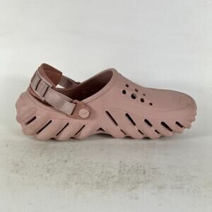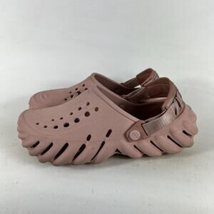 Elevate your summer footwear game with these Crocs Echo Clogs slip-on sandals. Featuring a solid pattern and beige color with a logo accent, these sandals are perfect for travel, activewear, and casual occasions. The sling back design and low top round toe provide comfort and ease of wear, while the rubber upper material ensures durability. This pair of women's sandals comes in a US shoe size of 9, with an EU shoe size of 40 and AU shoe size of 5. The slip-on closure and standard shoe width make them easy to wear and suitable for any season, whether it's summer, fall, or spring. Get your hands on these Crocs Echo Clogs men's sandals and experience the ultimate comfort and style.