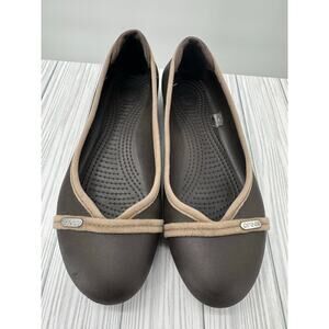 Crocs Espresso Brown with Suede Trim Ballet Slip-On Women's Flats Sz 10 Round Toe – Comfortable & Stylish Everyday Wear