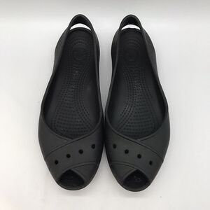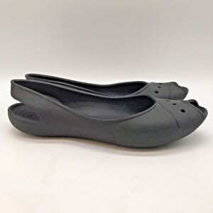 Crocs Farrah Peep Toe Slingback Ballet Flat Women's 8 Black Slip On Comfort Shoe