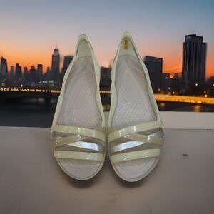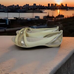Crocs Flats Womens 7 Isabella Huarache 2 Metallic Yellow Open Toe Boho Comfort