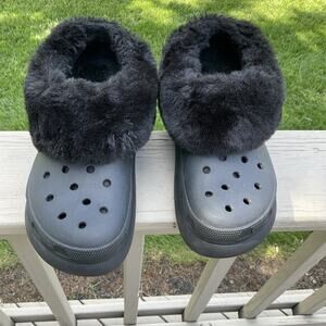 Crocs Furever Crush Black fur Lined chunky Clogs Mens size 8 womens size 10 fur