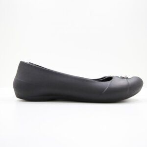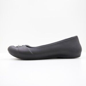 Crocs Gianna Black Rubber & Silver Medallion Lightweight Ballet Flats - 8