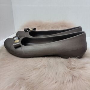 Crocs Gianna Dark Brown Bow Gold Cap Toe Ballet Flats Slip On Women's Shoes Size 8 Good Condition See Pictures For More Details.