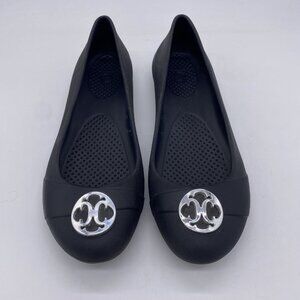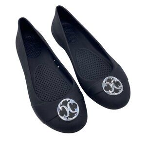 Crocs Gianna Disc Ballet Flats in Black with Silver Medallion, Size 7