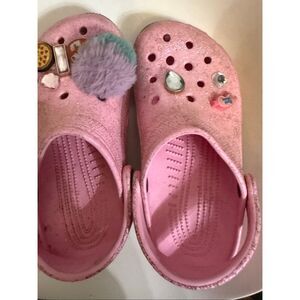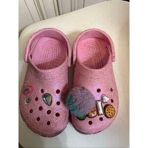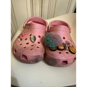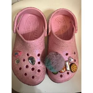 Crocs Girls Glittered Jibbitz Classic Clog Sandals Pink Size 4