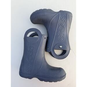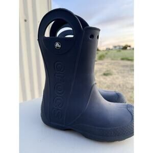 Crocs Handle It Rain Boots Kids Size J2 Navy Blue Waterproof Slip On Rubber