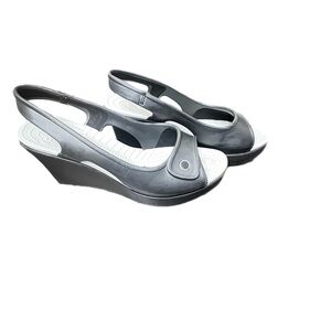 Crocs Havana Slim Wedge Sandals Womens Sz 10 Black Slingback Open Toe City Shoes