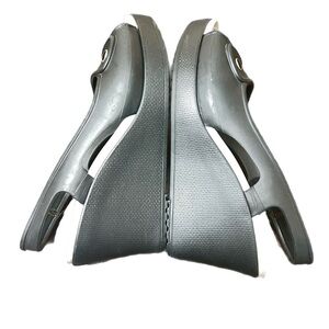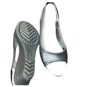 Step out in style with these Crocs women's peep toe shoes. Featuring a sleek gray design, these shoes offer both comfort and elegance. Perfect for any casual outing.