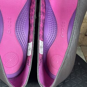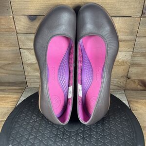 Crocs Heels Womens Size 8.5 Leather A-Leigh Closed Toe Wedge Brown Pumps Shoes