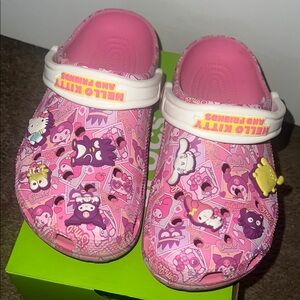Adorable Crocs clogs featuring a fun Hello Kitty design. Women’s size 7, In excellent used condition, used once