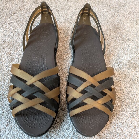 Crocs Huarache Mini Wedge. Sz 10. Espresso & Bronze. Pre-owned.