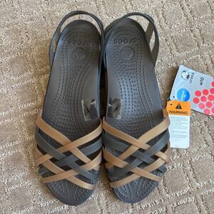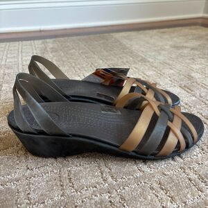 Crocs Hurache Mini Wedge Sandal Womens 10 Bronze Espresso Jelly Open Toe Braided