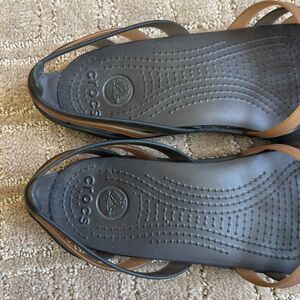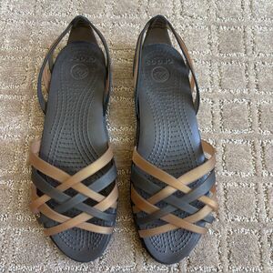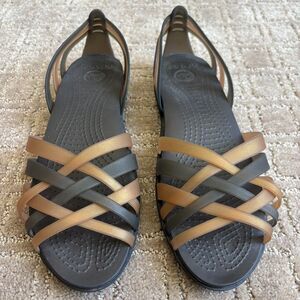 Crocs Hurache Mini Wedge Sandal Womens 7 Bronze Espresso Jelly Open Toe Braided