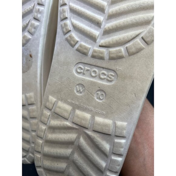 Crocs Iconic Comfort Beaded Slide Sandals Size 10 Ivory & Peach Embellished