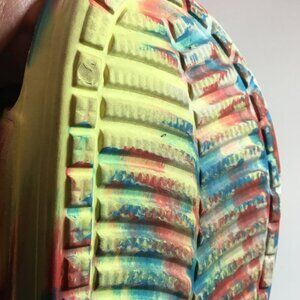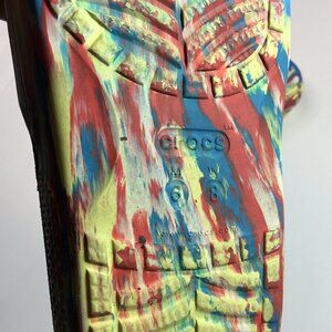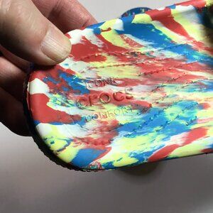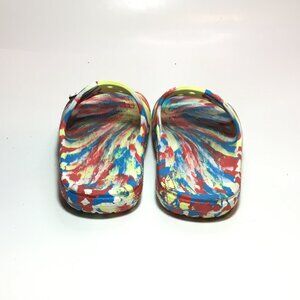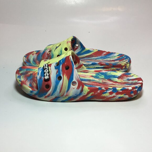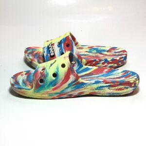 Crocs Iconic Comfort Classic Red/Yellow Marbled Slide Sandals Women's Size 8