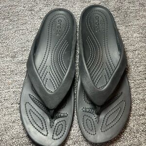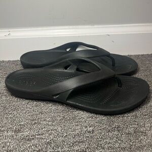 Crocs Iconic Comfort Flip Thong Black Sandals Women's Size 9 Mint condition