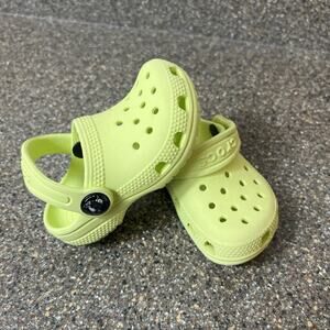 Crocs Iconic Comfort Kids Little Girls Toddler Sz 6 Lime Green Rubber Clog Shoes