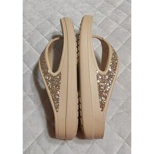 These Women's Size 9 Crocs Iconic Comfort Sandals are perfect for casual occasions during the summer, fall, and spring seasons. The slip-on style features a low wedge heel for added comfort, with a solid tan color and logo accents. Made of synthetic material, these sandals offer a personalized touch with their iconic Crocs design. Ideal for outdoor wear, these sandals are a stylish and comfortable choice for any woman's wardrobe.